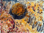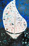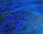 2014Kijk diep in je ziel, en het is zo blauw als de zee. Acryl verf, met aluminiumfolie, Kroatisch grof zout en kruiden ( kurkuma, chilipeper).