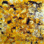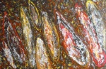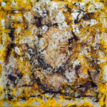 2013Geinspireerd op Aboriginal kunst. Acryl verf gecombineerd met aluminiumfolie en verschillende kruiden en thee.