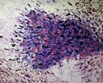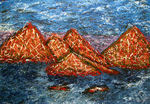 2011Indrukwekkende kleuren aan de brede horizon. Acryl verf met griesmeel en paprika poeder met pitjes.